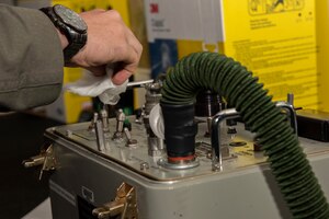 Airmen work together to create hand sanitizer at Dyess Air Force Base, Texas, April 6, 2020. The Airmen were able to gather all of the hand sanitizer ingredients from locations on base and in the local community. Airmen from the 7th Component Maintenance Squadron and the 28th Bomb Squadron followed