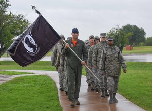 Dyess Airmen march through the linear air park for National Prisoner of War/ Missing In Action recognition day at Dyess Air Force, Sept. 21, 2018. On every third Friday of Sept. since 1986, Americans across the United States remember the sacrifices and service of those who were POW/MIA and their