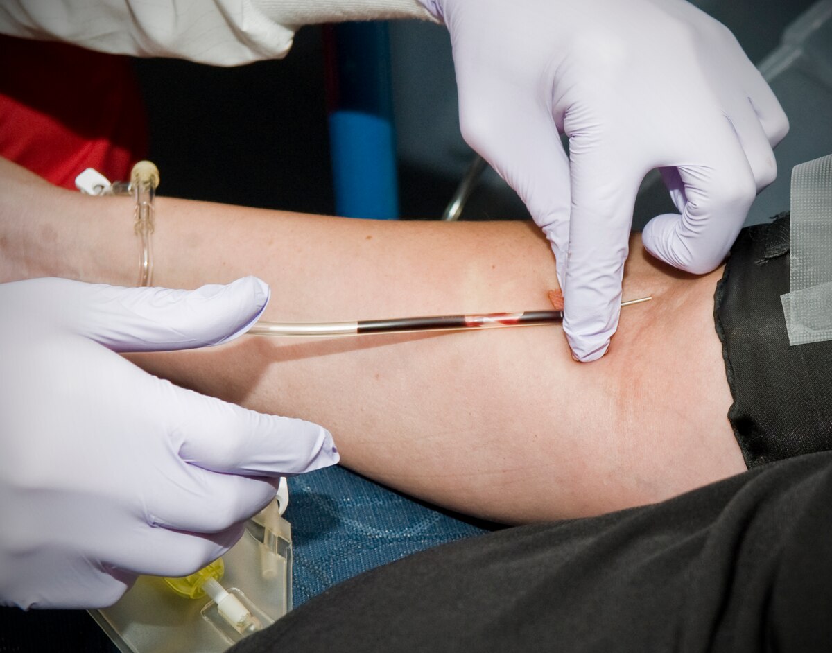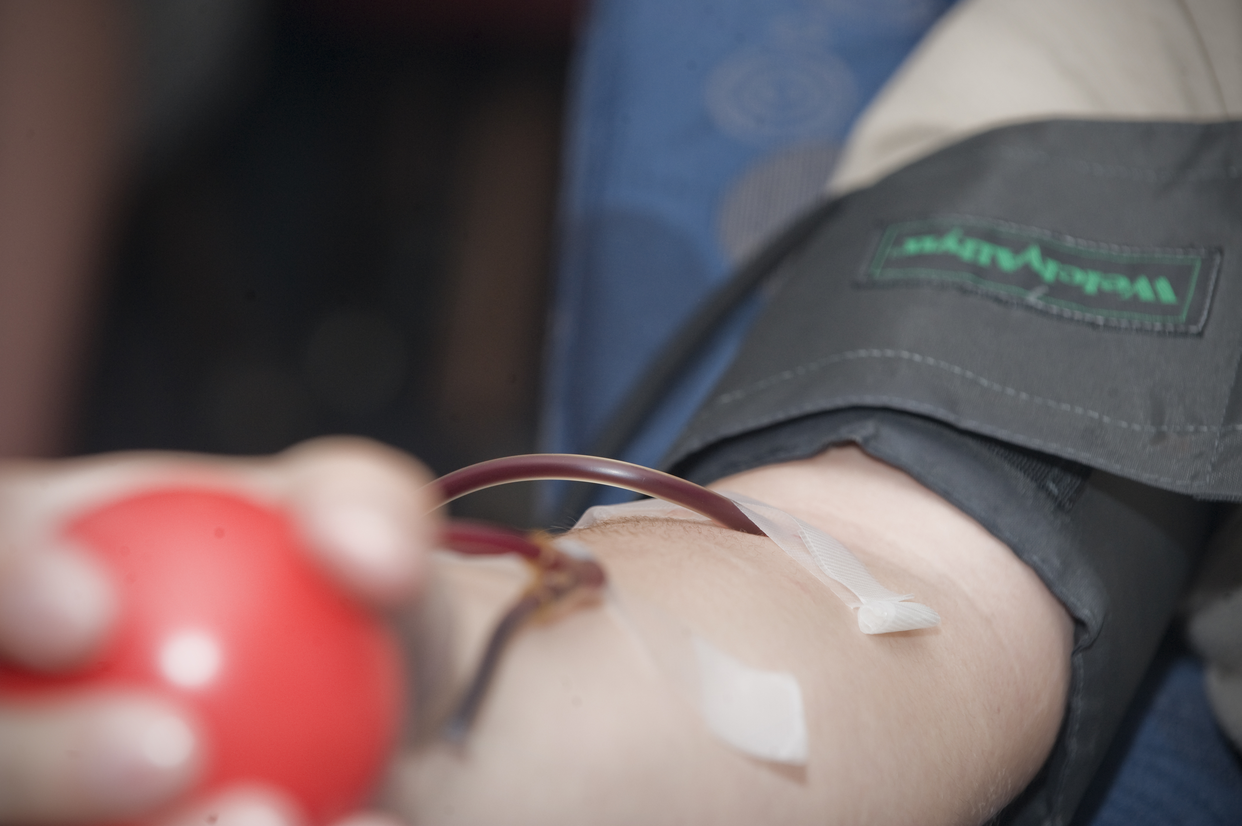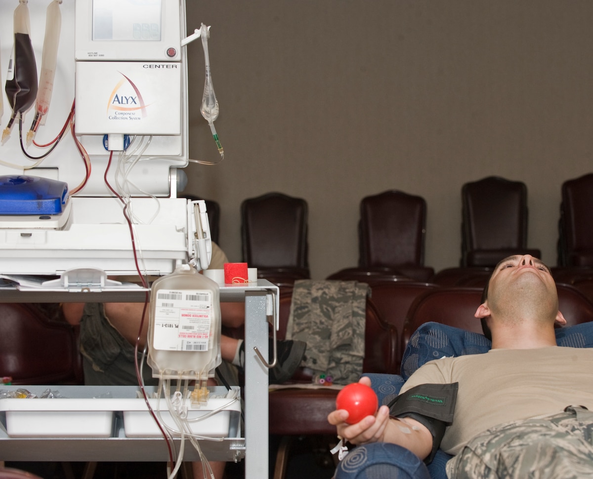 Airman 1st Class Johnny Guy, 7th Communication Squadron, waits 21 minutes while his blood is drawn during an on-base blood drive July 11, 2012, at Dyess Air Force Base, Texas. Each day blood donors serve as a lifeline to cancer patients, newborn babies, surgical patients, accident or trauma victims, dialysis patients and those with chronic anemia or blood disorders. For more information on donating blood, call (325) 670-2798 or logon to their Web site at www.meekbloodcenter.org. (U.S. Air Force photo by Airman 1st Class Jonathan Stefanko/ Released)