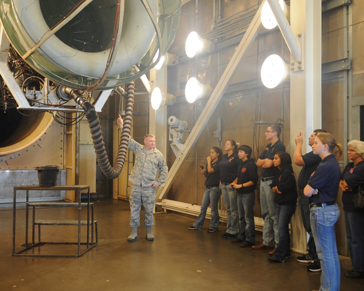 U.S. Air Force Staff Sgt. Kelly Lee, 7th Civil Engineer Squadron, right, shows JROTC students from Central High School, San Angelo, Texas, airman dorms, May 9, 2012, at Dyess Air Force Base, Texas. The students toured different parts of Dyess including the airpark, dorms, hush house and the military working dogs kennel. (U.S. Air Force photo by Airman 1st Class Cierra bullock/Released)