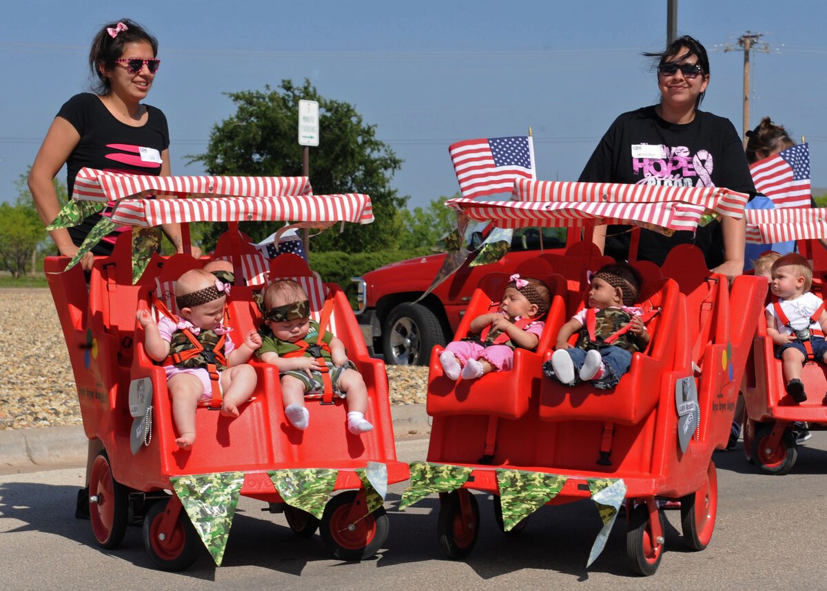 Children from the Child Development Center take part in the annual CDC parade April 6, 2012, at Dyess Air Force Base, Texas. The CDC is a modernized facility which provides a diverse and rewarding developmental experience for children ages six weeks old to six years old. (U.S. Air Force photo by Airman 1st Class Peter Thompson/Released)