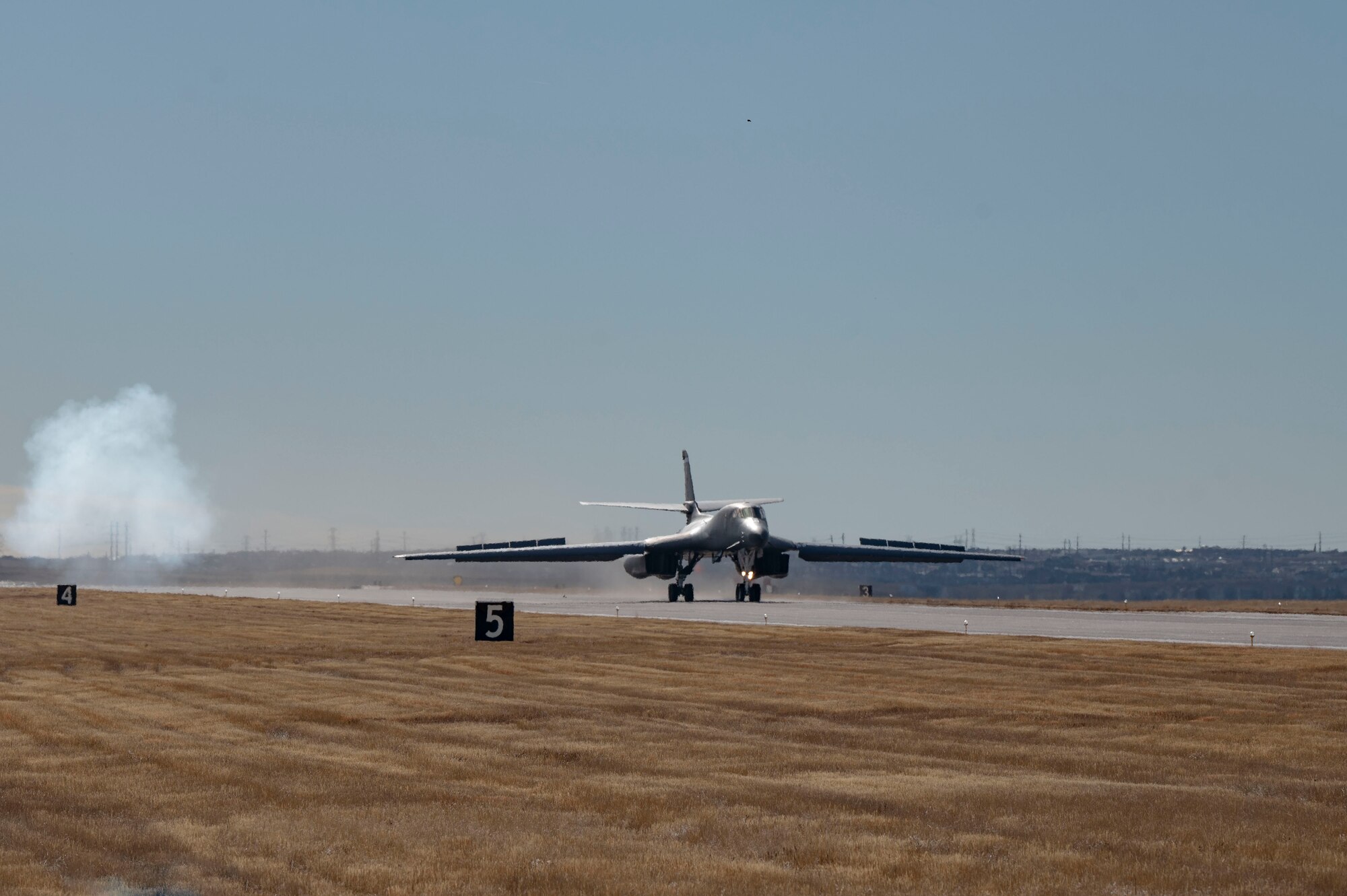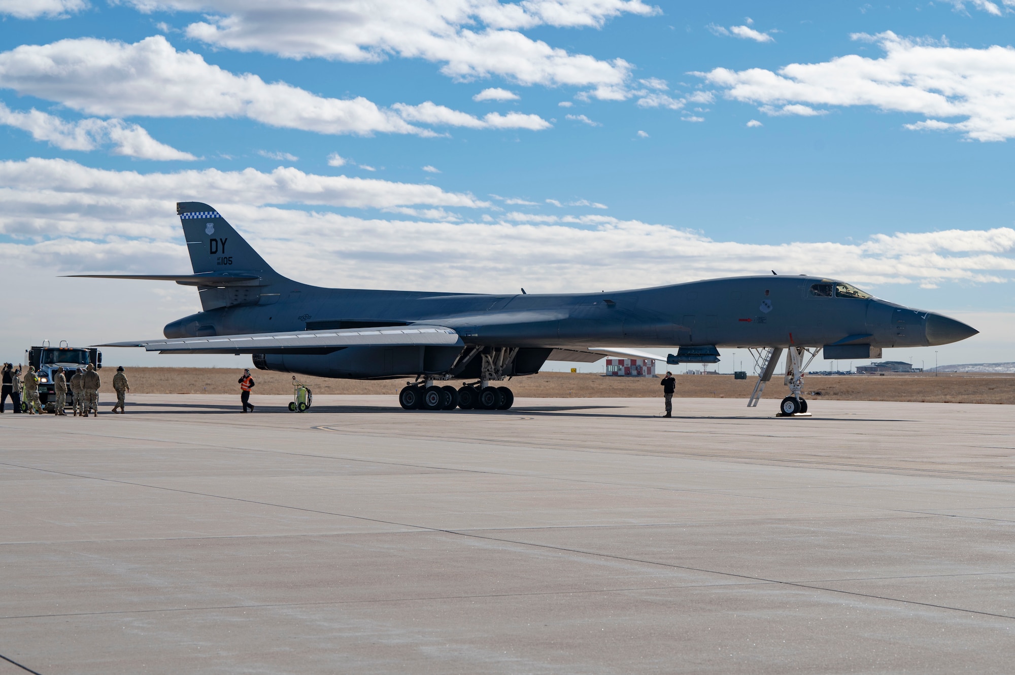 Airman 1st Class Daniel Arias, 7th Logistics Readiness Squadron fuels distribution operator, performs hot pit refueling on a B-1B Lancer at Buckley Space Force Base, Colorado, Feb. 14, 2024. Hot pit refueling enhances the overall agility of combat forces, ensuring they can adapt to evolving threats. (U.S. Air Force Photo by Airman 1st Class Emma Anderson)
