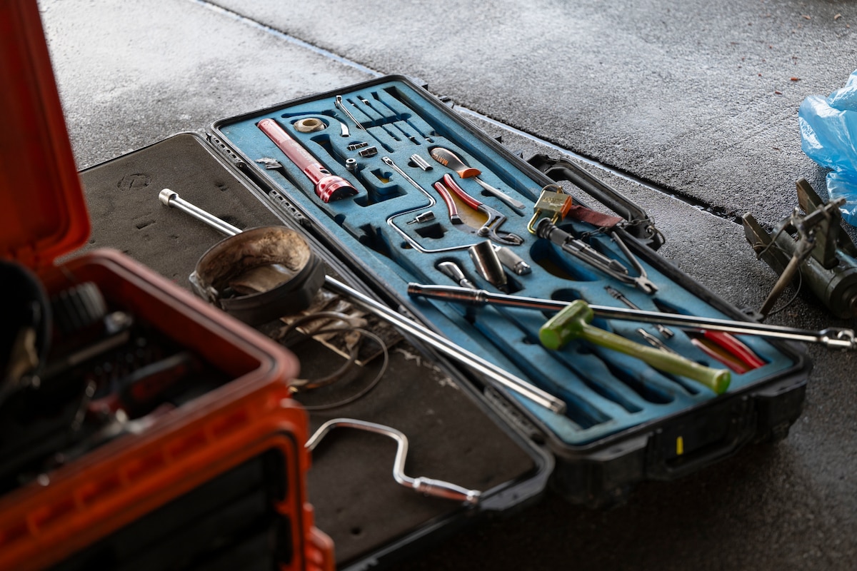 U.S. Air Force Tech Sgt. Thomas Norman, 9th Expeditionary Bomb Squadron aerospace propulsion technician, prepares a trailer for an engine swap on a B-1B Lancer during a bomber task force deployment at Misawa Air Base, Japan, Oct. 27, 2025. Strategic BTF operations build the readiness and resilience required to meet any global challenge. (U.S. Air Force photo by Senior Airman Emma Anderson)