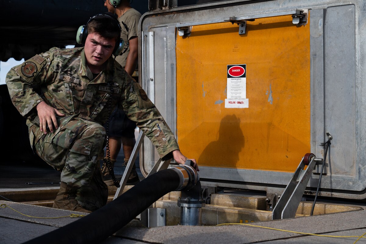 U.S. Air Force Col. Seth Spanier, 7th Bomb Wing commander and B-1B Lancer pilot, prepares for a routine training flight at Dyess Air Force Base, Texas, Sept. 15, 2025. As commander of the Air Force’s largest B-1B wing, Spanier is responsible for the health and welfare of more than 14,500 active-duty members, civilian employees and family members, as well as providing mission-ready B-1B aircraft, aircrew, combat support and Airmen for global taskings. (U.S. Air Force photo by Senior Airman Jade M. Caldwell)