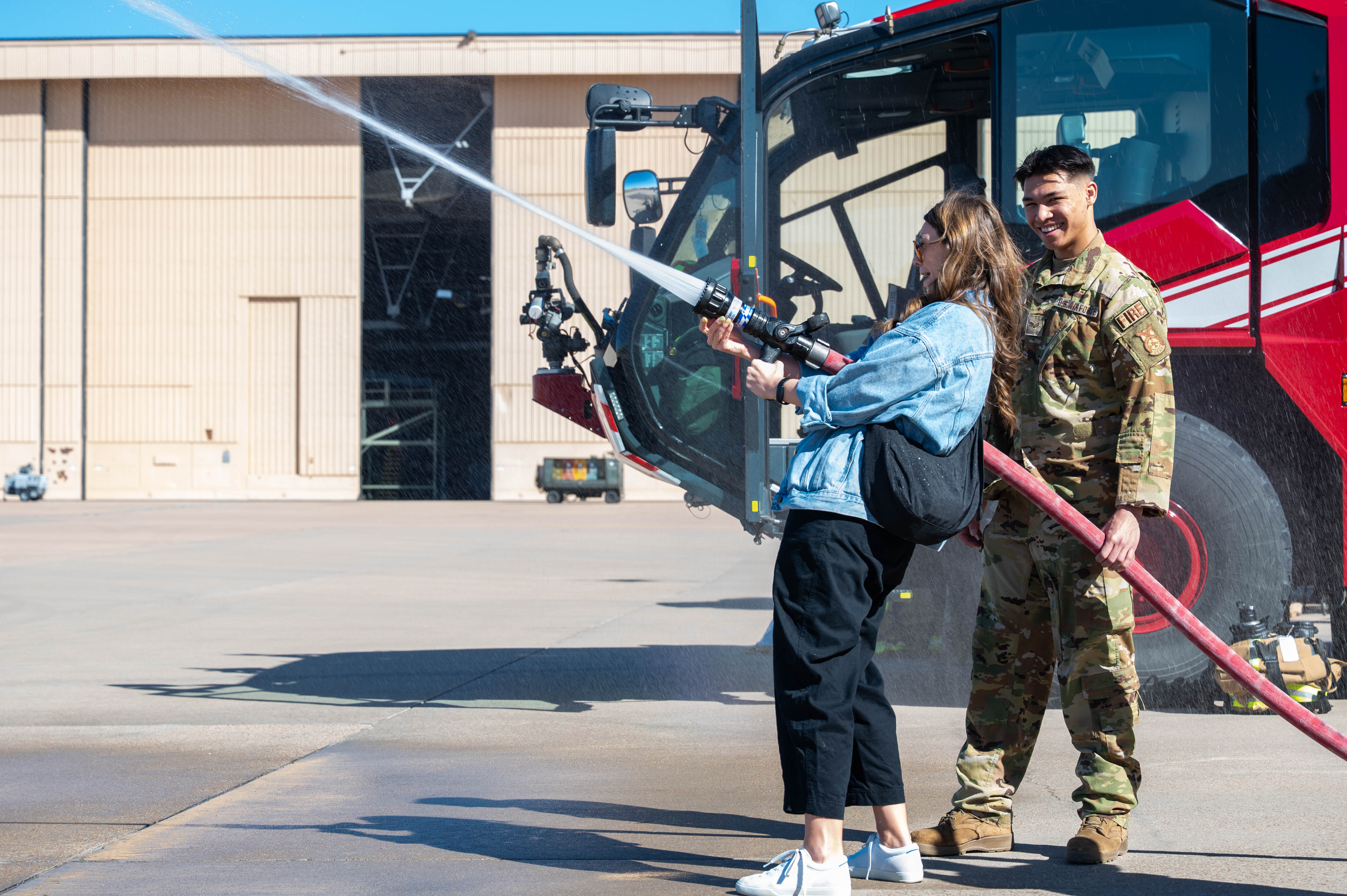 U.S. Air Force Staff Sgt. Heriberto Perez, 7th Munitions Squadron armament maintenance supervisor, left, and Airman 1st Class Maya Roberto, 7th MUNS armament maintenance member, prepare to position a Joint Air-to-Surface Standoff Missile to be loaded onto a B-1B Lancer at Dyess Air Force Base, Texas, Feb. 14, 2026. The JASSM weapon system enables the Air Force to strike targets from extended ranges, strengthening deterrence and global strike capabilities. (U.S. Air Force photo by Airman 1st Class Caleb Schellenberg)